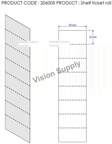 Thermal shelf ticket 50x25mm2000 labels per rollwhite5 rolls per CTN Compatible with: Fred store/quick sell POSPharmasol lots POSPOS worksZsoftware...